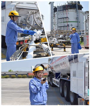 近期,東部站LNG貿易剛剛起步,外供裝車作業頻繁。三伏天,分公司將大部分裝車作業推遲到傍晚進行,一是為了讓員工避開高溫,二是傍晚溫度相對低一點便于操作。為了確保每日裝車作業按計劃安全完成,作為大班長的沈芬娟,白天忙了一整天后,又晚上又總是第一個出現在裝車現場,全程監控指導預冷管線、槽車接口安裝等重要操作步驟,每隔一段時間對槽車進行泄漏檢測,衣服經常是一整天就沒干過,直到槽罐車安全離站。