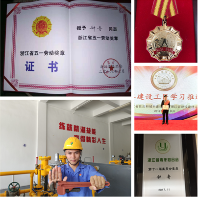 六年來,他扎根基層,跟隨師傅沈衛國苦練基本功。2015年,他首次參加調壓工技能競賽,就以扎實的理論知識和過硬的操作技藝,獲得浙江省第一、全國第十的好成績,成為唯一一名擠進前十的大學生選手;2017年,他再次參加浙江省調壓工技能競賽,雖然在比賽中意外受傷,卻忍著劇痛,歷經4次包扎,最終以完美的表現獲得實操滿分,成為至今為止,唯一一位連續兩屆蟬聯省調壓技能操作比武冠軍的選手。