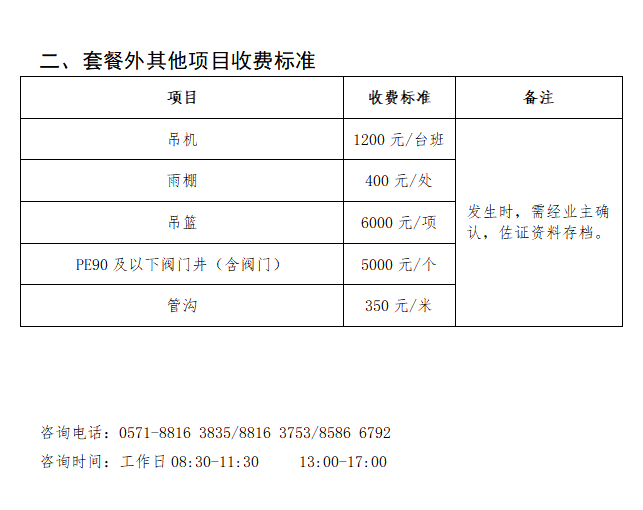 小時設計流量25方(含)以下非居民用戶工程服務收費標準